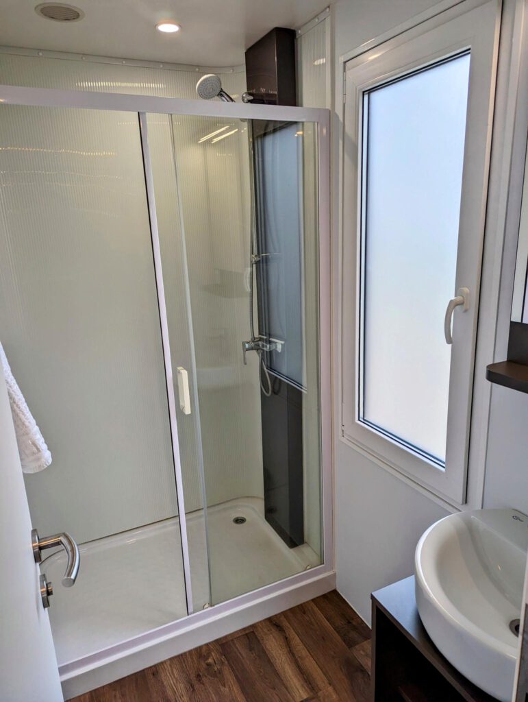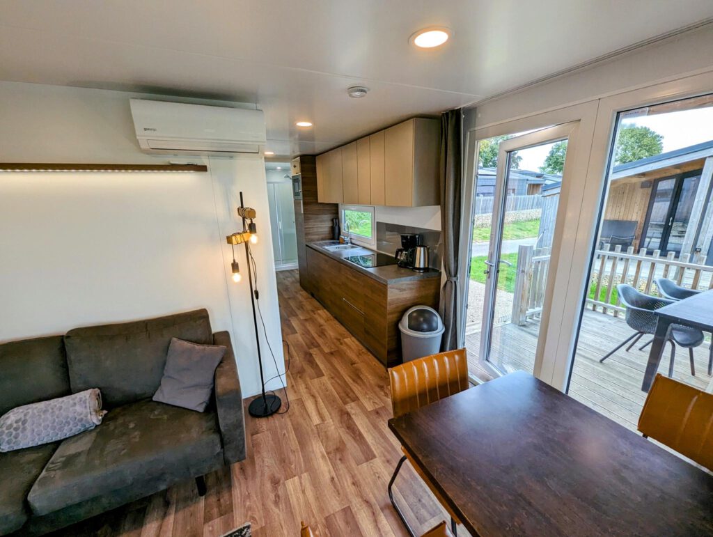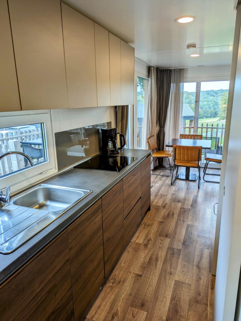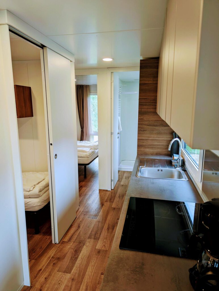 De woning van het type Bellevue uit 2019 is gelegen op eigen grond, inclusief eigen parkeervoorziening en met een royaal overdekt terras met panoramisch uitzicht. Deze gasloze woning is gemaakt voor een duurzame toekomst door het gebruik van hoogwaardige isolerende materialen en voorzien van zonnepanelen. Daarbij is het van binnen van alle gemakken voorzien en uitgevoerd met airconditioning. De woonkamer is comfortabel ingericht en biedt toegang tot de het terras en de open keuken met onder andere een combimagnetron en vaatwasser. De ouderslaapkamer is voorzien van een tweepersoonsbed en rondom ruime opbergmogelijkheden. De tweede slaapkamer is voorzien van 2 eenpersoonsbedden en garderobekasten. Tot slot heeft deze woning een ruime badkamer met wastafel en ruime inloopdouche. Het toilet is separaat.