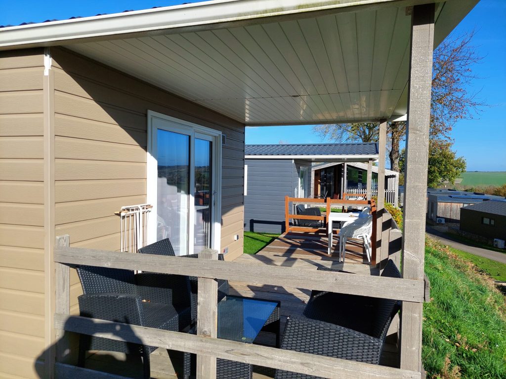Het ultieme vakantiegevoel beleeft u op het grote terras, waar een tafel met stoelen en een loungeset staan. Geniet van het lekkere weer, de rust en het prachtige uitzicht richting het Heuvellandschap. Na een wandeling, fietstocht of een dagje uit in de regio is dit de perfecte plek voor een hapje en een drankje, terwijl de kinderen buiten spelen. Nieuwe herinneringen maakt u op Panorama Park Gulperberg!