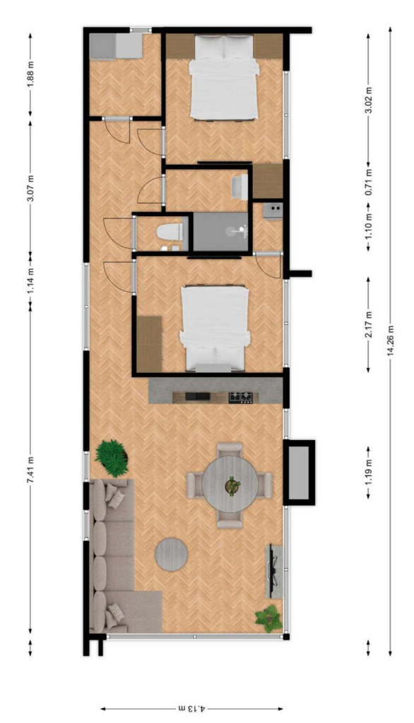 Met een vloeroppervlakte van 62m2 biedt dit type meer dan voldoende ruimte,
