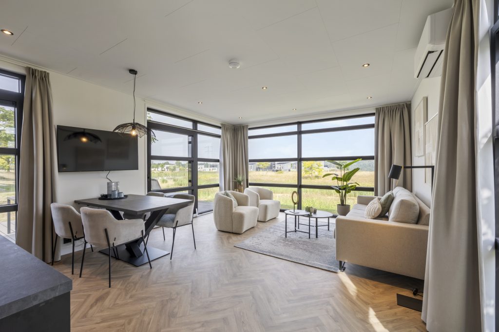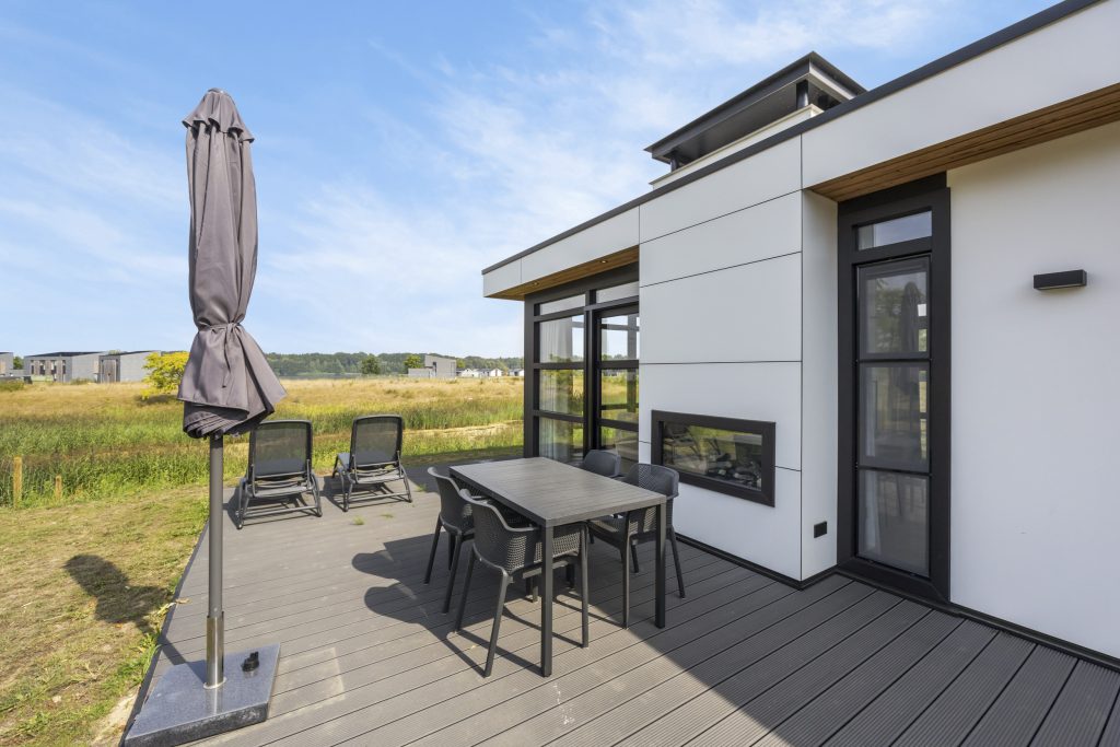 Laat u verwonderen door de luxe afwerking en geniet ‘s avonds van de ingebouwde elektrische sfeerkachel op het ruime terras