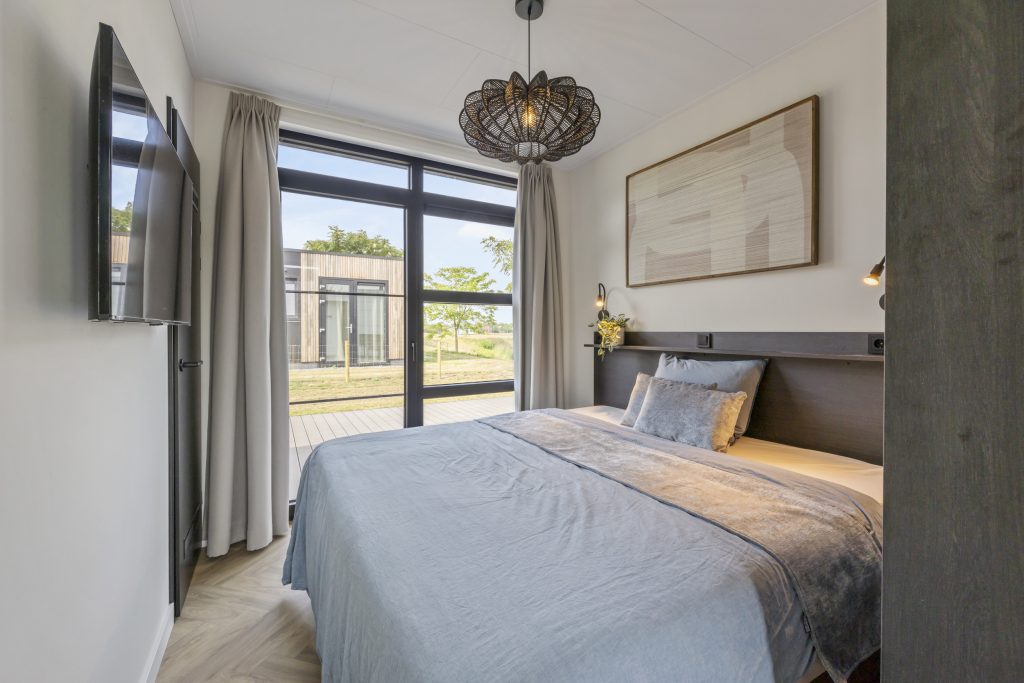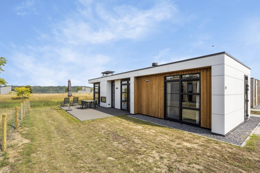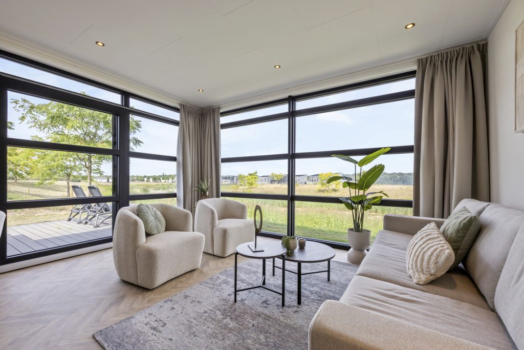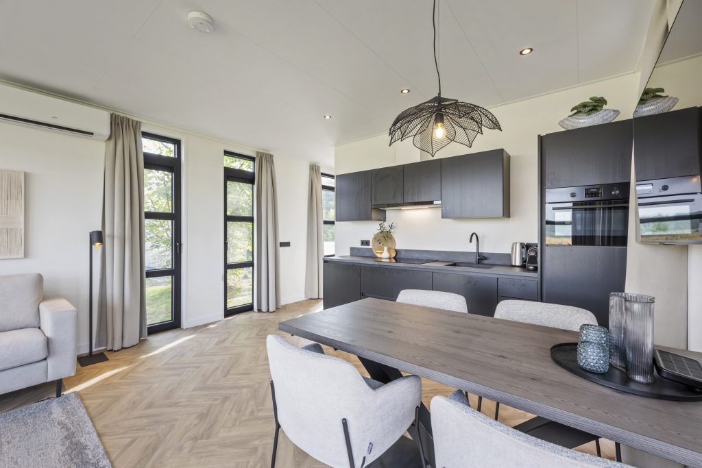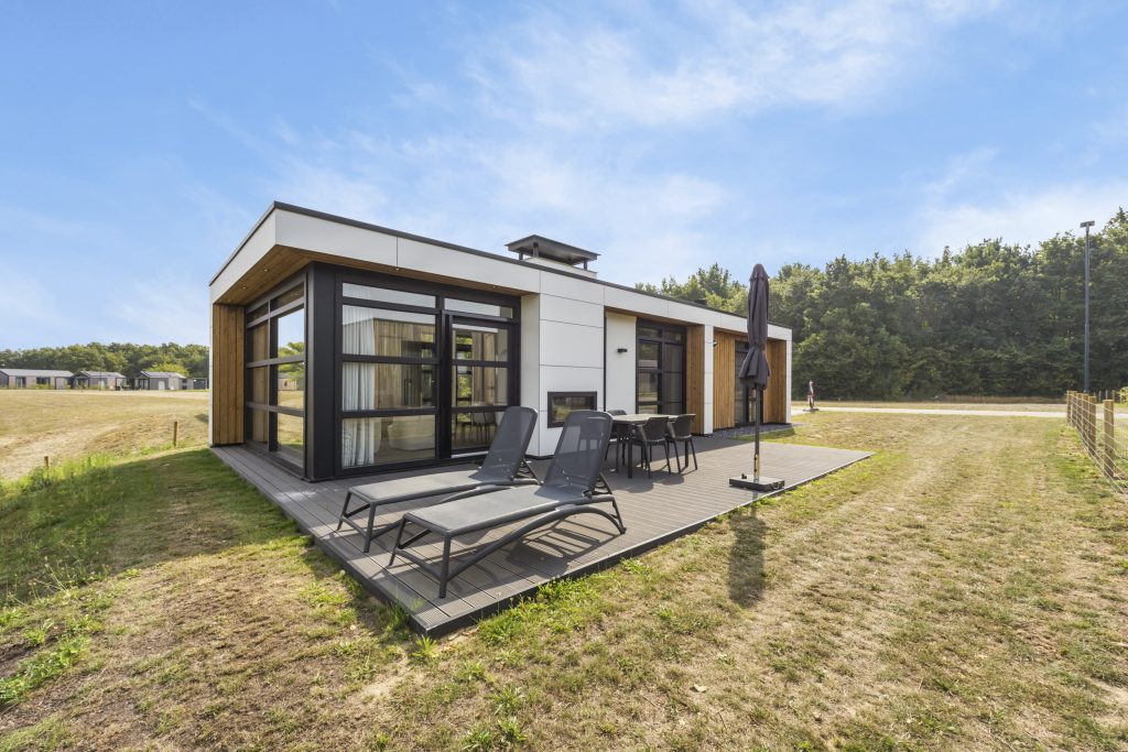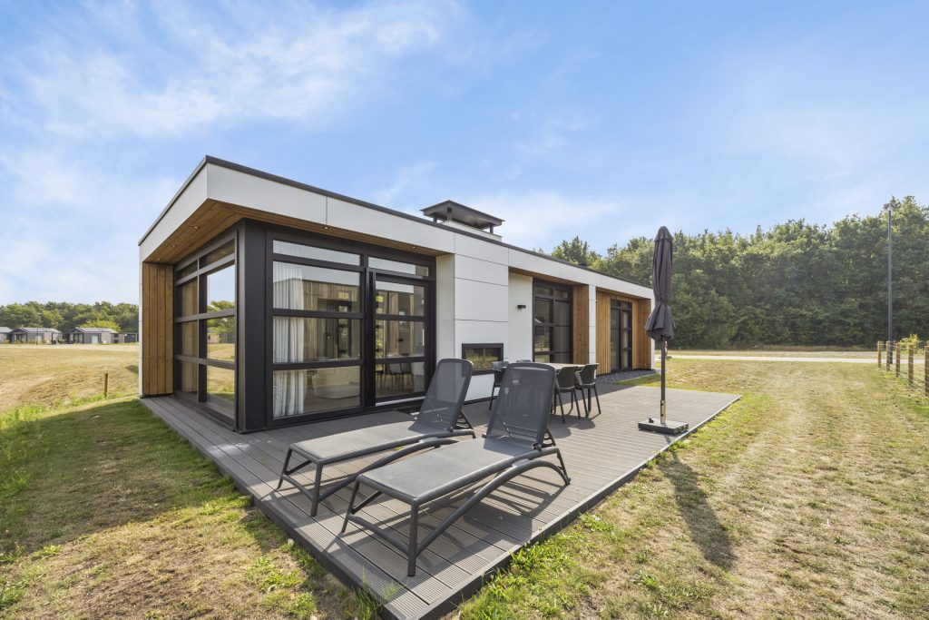 Deze schitterend gelegen bijzondere en nagenoeg nieuwe vakantiewoning van het type Cube De Luxe op Resort Boschmolenplas op perceel eigen grond van 490m2.