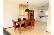een gezellige woonkamer met eetgedeelte en open keuken, drie slaapkamers en een badkamer.