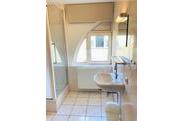 Ruime badkamer v.v. douche, wastafel en toilet.